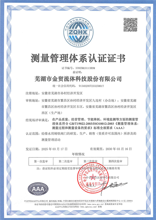 测量管理体系认证证书