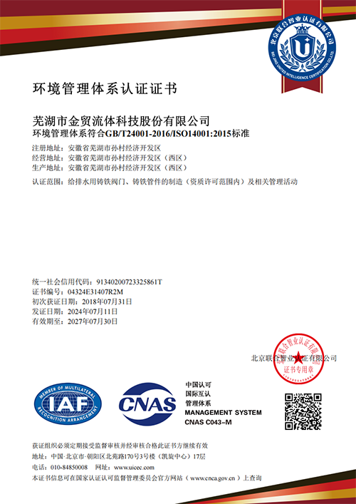 环境管理体系认证证书